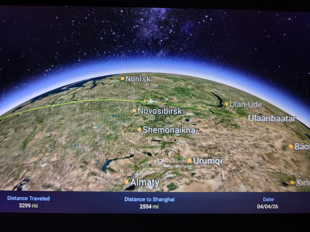 On a straight line from Brussels to Shanghai. No Trade War, no boycot of Russia, nothing restricting Chinese airlines to fly over Russia, making the flight time much shorter and ticket cost significantly cheaper.