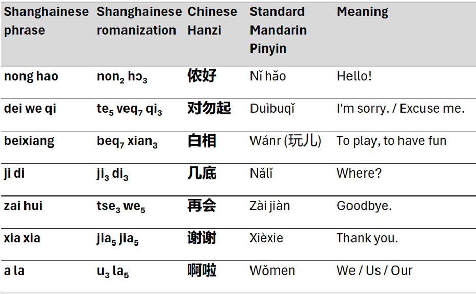 De Shanghaise taal behoort tot de Wu-taalfamilie, net als het Suzhounese en het Wenzounese (de taal van de meeste restauranteigenaren in Europa).