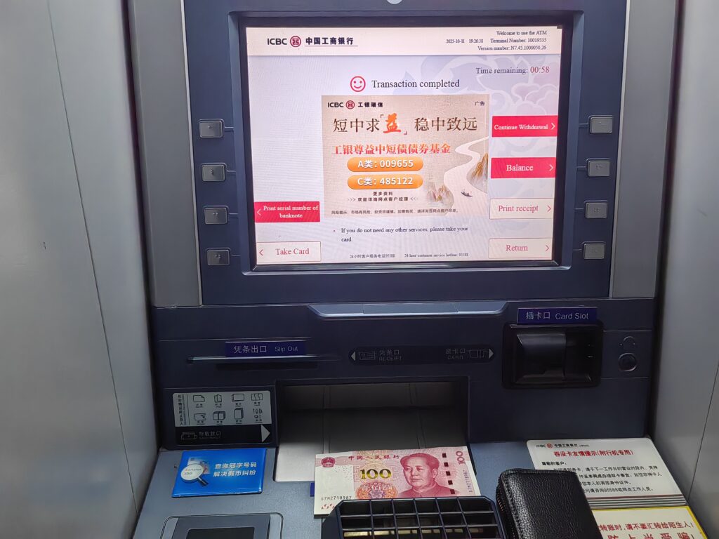 Vandaag heb ik, gedreven door nieuwsgierigheid en een vleugje nostalgie, een biljet van 100 CNY uit een oude geldautomaat achter een hoek bij een ICBC-bankfiliaal gehaald. Ik ben van plan dit biljet als souvenir te bewaren, als tastbaar overblijfsel van een tijdperk dat in dit deel van de wereld al voorbij is.