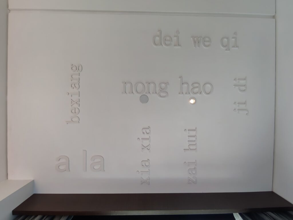 Het plafond van onze hotelkamer is versierd met uitdrukkingen in de lokale taal van Shanghai.